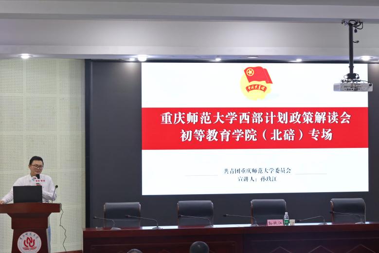 为积极响应习近平总书记的号召,引导毕业生服务基层,到祖国最需要的地方去,增强同学们对西部计划的了解和认识,2022年4月21日下午,初等教育学院在逸思讲堂举办了“大学生就业指导系列讲座之西部计划政策解读专题宣讲会”,校团委综合科科长孙玖江老师主讲,学院团委书记王亮老师主持,部分辅导员老师和大三、大四同学参加此次宣讲。本次讲座采取线上线下相结合的形式,通过腾讯会议现场直播,为更多同学提供西部计划政策解读服务。