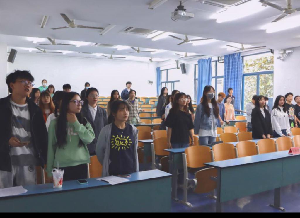 活动进行至最后一项内容,在场团级干部全体起立合唱团歌。至此,2021-2022学年度团干例会暨团干部“六查六问”专项行动动员部署大会圆满结束。