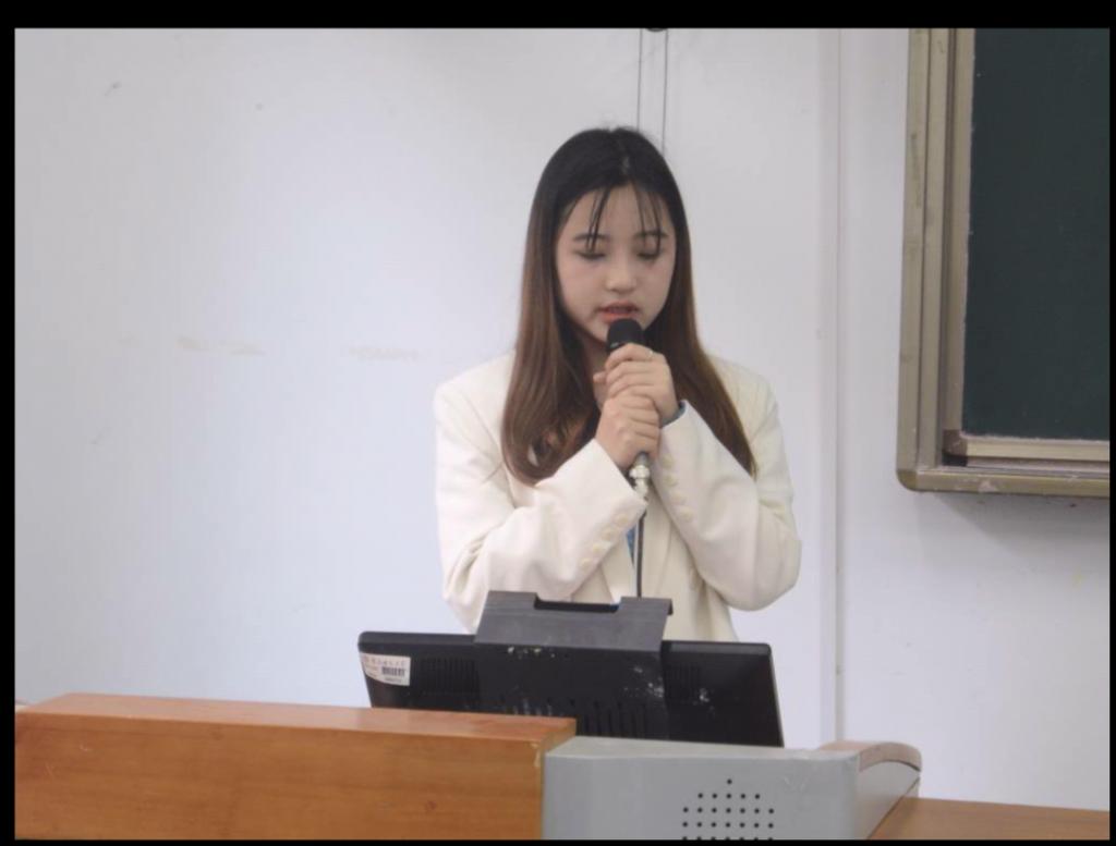 接下来,以组织部于怡赛同学为代表,对“青马班”的相关工作进行总结和汇报,就“青马班”截至目前所开展的四次活动进行回顾,着重介绍了本届“青马班”开设课程结合我院教学特色在内容与形式上进行的有效创新。