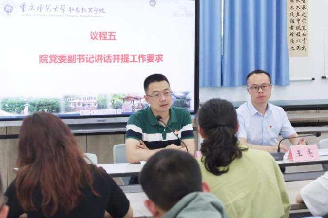 2022年5月5日中午,重庆师范大学初等教育学院在双创中心召开学生骨干“六查六问”专项行动动员部署会议。学院党委副书记郭小辉老师、团委书记王亮老师以及学院团委、学生会干部,大一大二大三各团支部支书班长参加本次会议。