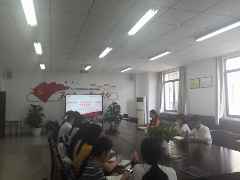 为培养学生自主教育意识和能力,202255日下午430分,M88外国语学院在集贤楼434会议室召开十人谈师生座谈会。外国语学院党委副书记曹丽、2020级辅导员湛欣、李琰以及2020级学生代表参加了座谈。