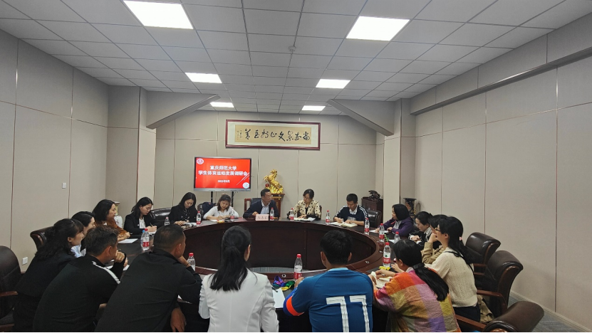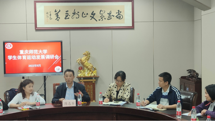 2022年5月20日下午,校党委副书记陈志军带队到体育与健康科学学院调研学校学生体育运动发展工作。党委学工部(学生处)、教务处、研究生工作部、校团委、校工会等部门领导和老师参加,部分学院分管学生工作副书记、团总支书记,体育与健康科学学院党总支书记蒋霞、院长何强、副书记李茂蓉、公体部教师代表、教练代表等与会。