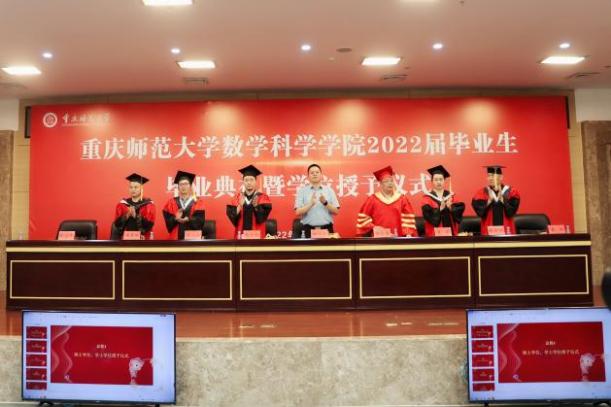 2022年6月23日,M88数学科学学院博雅楼504室举行了2022届学生毕业典礼。党委书记杨江水、院长杨志春、党委副书记袁小于、副院长张文萌、院学位委员会委员蔡钢、周寿明、张新功、童莉以及一众教师代表出席本次活动。