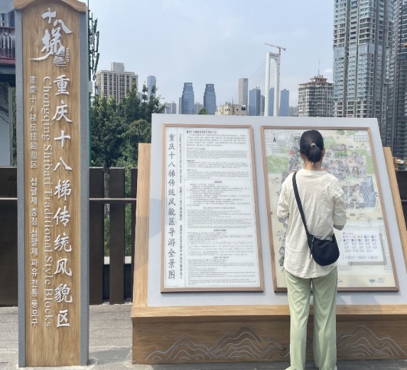 2022年83日上午9点,小分队成员在队长的带领下准时到达渝中区洪崖洞。原来的洪崖洞是一个贫民窟,是社会底层人居住的地方。随着时间的推移,重庆的发展越来越好,现在的洪崖洞是时代进步的象征。洪崖洞也代表着重庆,每天都有滔滔不绝的人来到洪崖洞欣赏它的美丽。通过这次活动,增强了成员们的文化自信,也加深了成员们对重庆的认识。