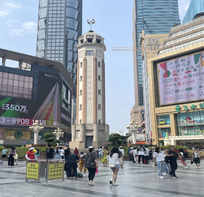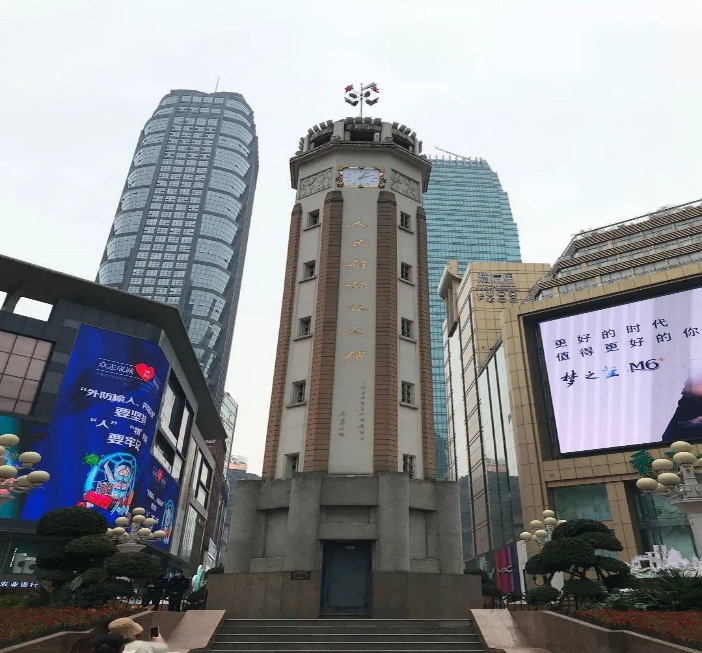 2022年84日,小分队又到达重庆市渝中区抗战胜利纪功碑暨人民解放纪念碑。抗战胜利纪功碑暨人民解放纪念碑,简称“解放碑”,是抗战胜利的精神象征,是中国唯一一座纪念中华民族抗日战争胜利的纪念碑。