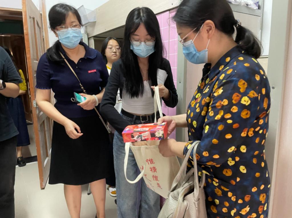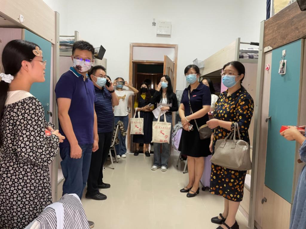 引导22级新生感受节日的氛围和学院的关怀,9月9日下午,文学院组织开展寝室慰问活动。学院党委书记税强,副院长(主持工作)凌孟华,党委副书记杨梅,副院长何易展,团委书记康慧,新生辅导员余尊敬、罗淑娟等一行人带着精心准备的月饼前往新生寝室走访,给同学们送上最真挚的节日祝福。