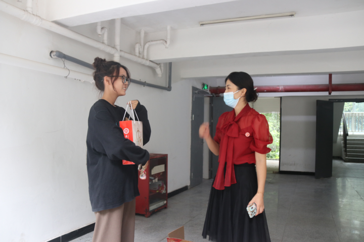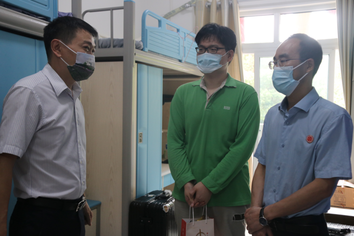 在学生寝室,学院领导、老师们与在校生亲切交流日常生活是否适应,学习状况是否顺利等,遇到困难及时联系学院,学院一定全力帮助同学们解决问题。同时,领导老师们嘱咐同学们,疫情无情人有情,中秋佳节宜和家人联系,共叙中秋思念之情。同学们倍感温暖,纷纷表示感谢学院的关怀与帮助。