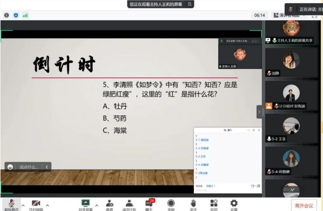 最后是“抢答”环节,每个小组共设有5道题目,选手们进行线上抢答,大家你争我夺,不甘落后,为观众们展示了一场精彩纷呈的抢答比赛。