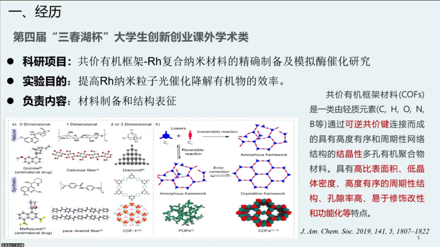 此次活动还邀请到4位化学学院优秀学生,以“学长学姐说”的形式,跟参与学生分享自己的项目经验。2022届毕业生卢思帆学长、2019级李莹莹学姐和杨婷学姐、2020级欧阳聪睿学姐结合自己的经历,向同学们阐述了自己的理解并分享了自己的故事,最后,学长学姐们还针对同学们提出的问题进行解答,给出了自己的宝贵建议。