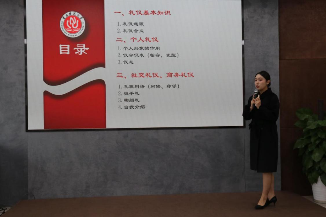 此次培训以“礼”为线,分为礼仪基本知识、个人礼仪、社交与商务礼仪三大板块,由浅入深,让学生识“礼”、学“礼”、用“礼”。