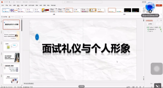 杨俊玲老师首先从5HR的问卷调查引出面试礼仪的重要性,并指出其核心是从得体言行打造个人形象,传递尊重、促进沟通、塑造形象与增进感情。她强调,要从“头”开始面试中树立静态形象、动态形象与职业形象,与此同时,倾听礼仪和邮件礼仪也尤为重要。