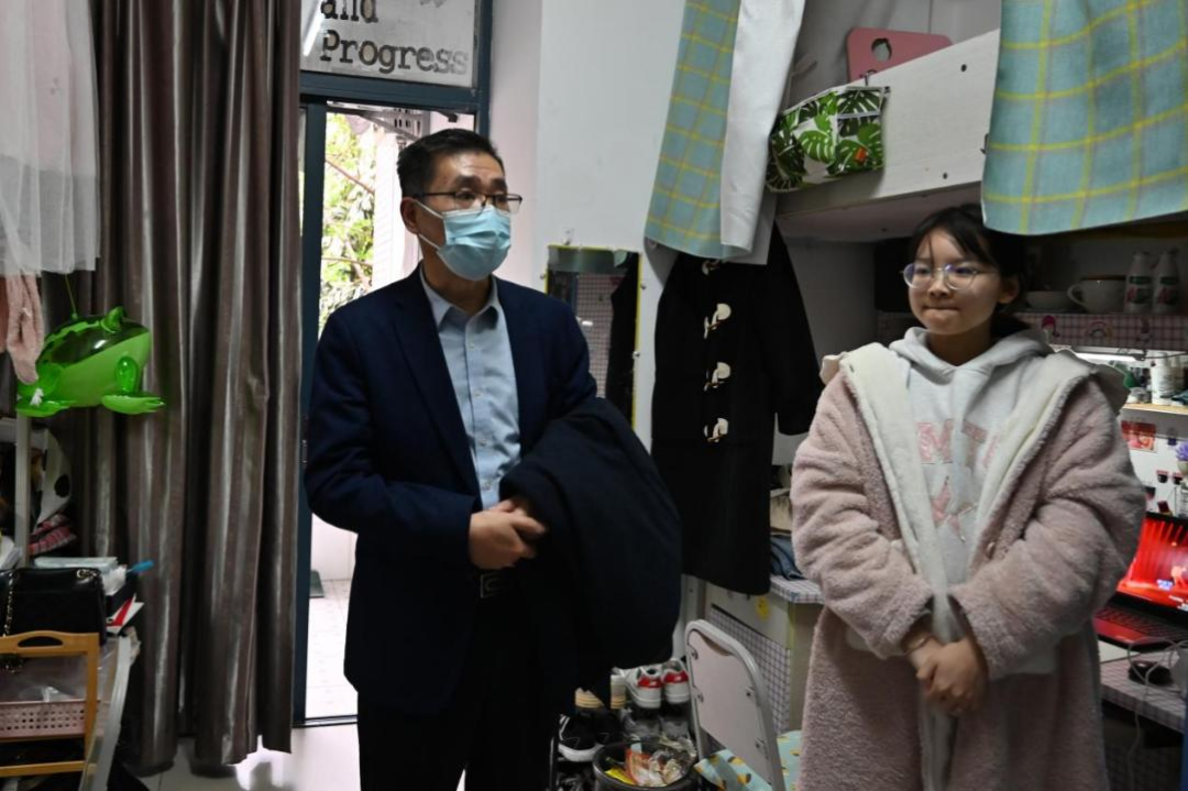 颜春龙院长、赵艳君副书记同研究生辅导员熊风一行走访了研究生寝室,询问了同学们的学习和生活近况。