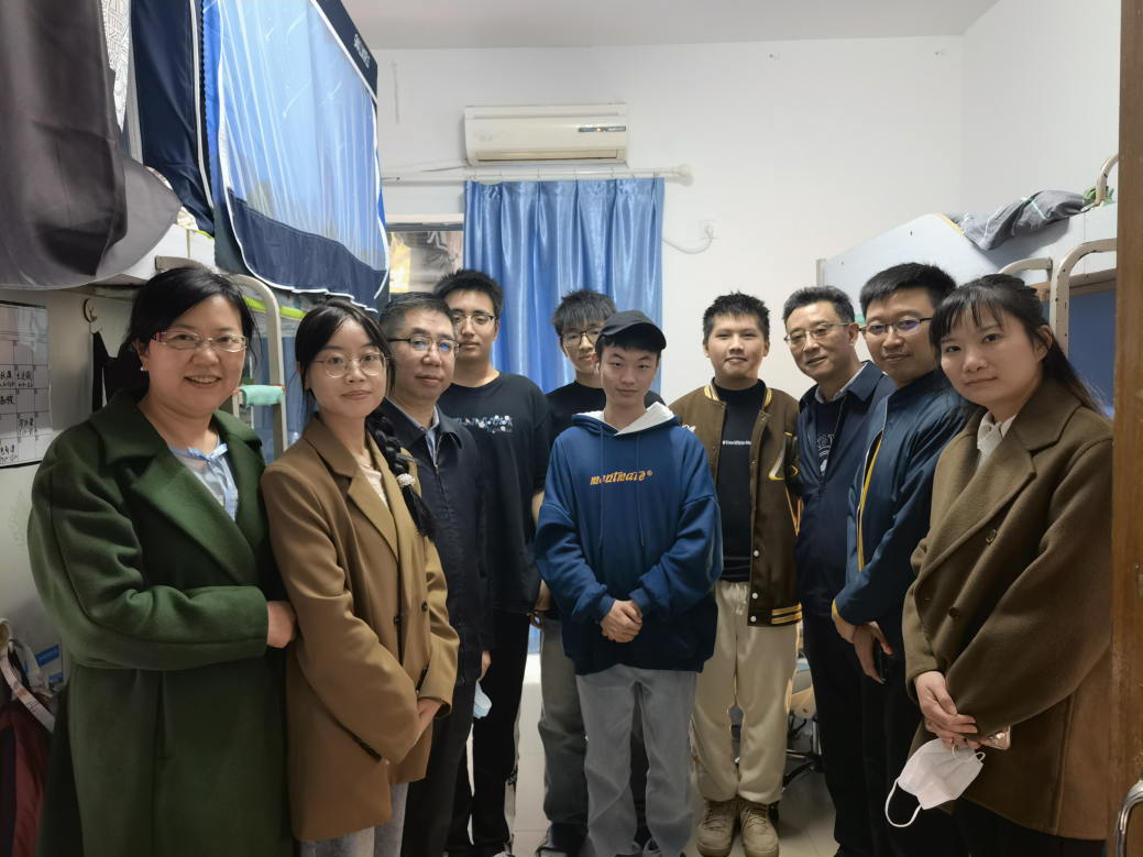 校领导、辅导员们与男生寝室合照