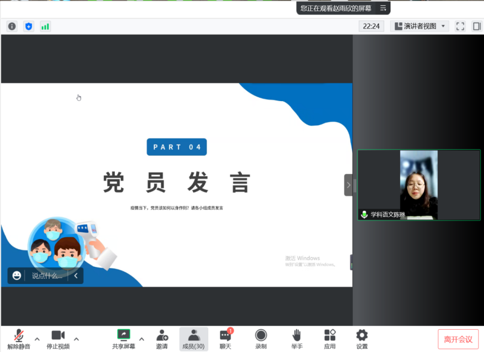 研究生第三支部陈琳同学代表党员发言