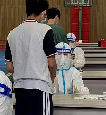 学生党员黄巧丽协助核酸检测