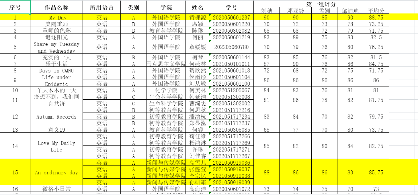 本次比赛于117日开始,11月25日结束,历时19天。比赛前期的宣传效果较好,吸引了各个学院的同学积极参与,最终共收取作品投稿136份。经过评审小组对作品进行打分,选出排名前30的优秀作品进入复赛环节。复赛环节分为线上投票和老师评分,为保证本次比赛的公平公正性,工作人员严格把控,防止线上投票环节出现不正当行为,同时也邀请学院专业老师,以两人一组为进入复赛的作品打分。经过综合考量和评审,共10份优秀作品脱颖而出。