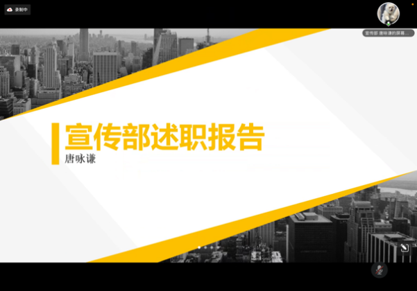 宣传部主要负责人唐咏谦对宣传部的日常工作和重点工作分别进行了总结和反思。