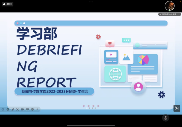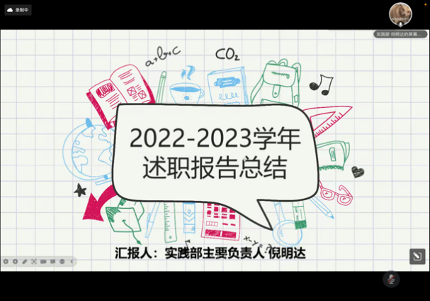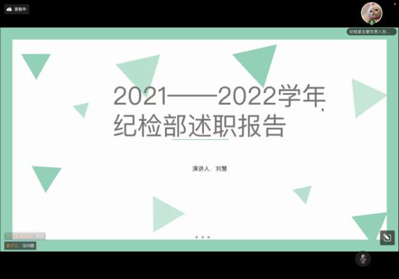 纪检部主要负责人刘慧分别从查课工作梳理、纪检部招新工作、创新查课方式、举办活动、权益活动五个方面进行了总结。