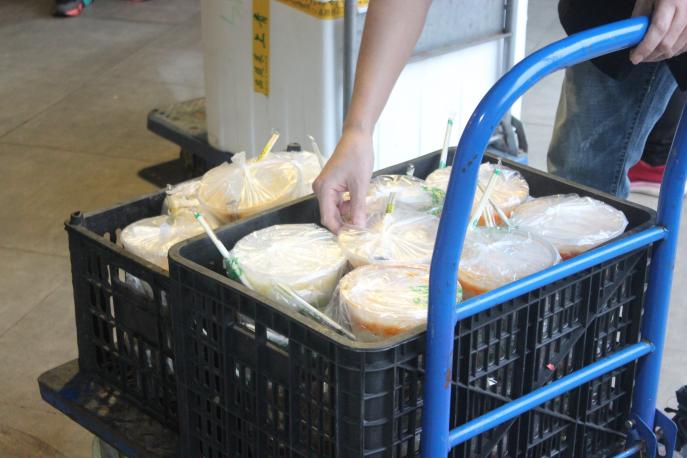 从清晨到傍晚,送餐时亦有他们的身影。