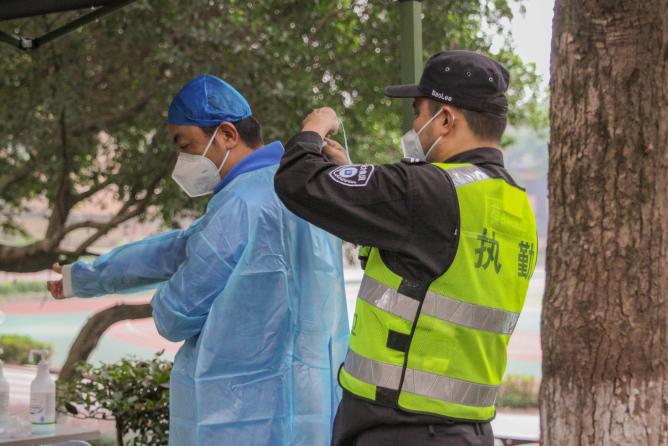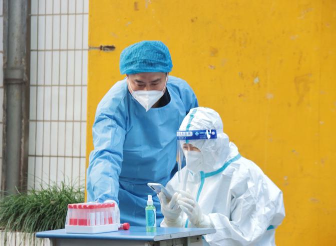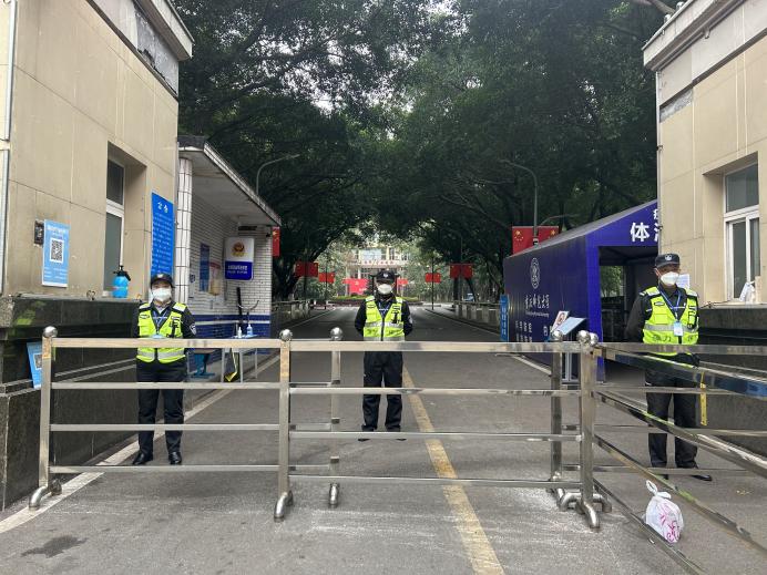 后勤人员默默守护,协助核酸检测,尽心尽力卫校园。