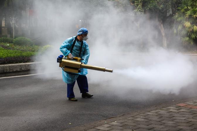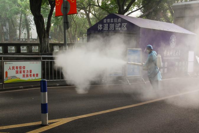 晨光微露,消杀工作已在进行,他们保障着校园安全。