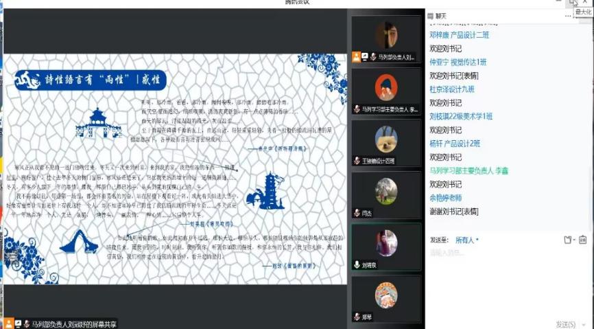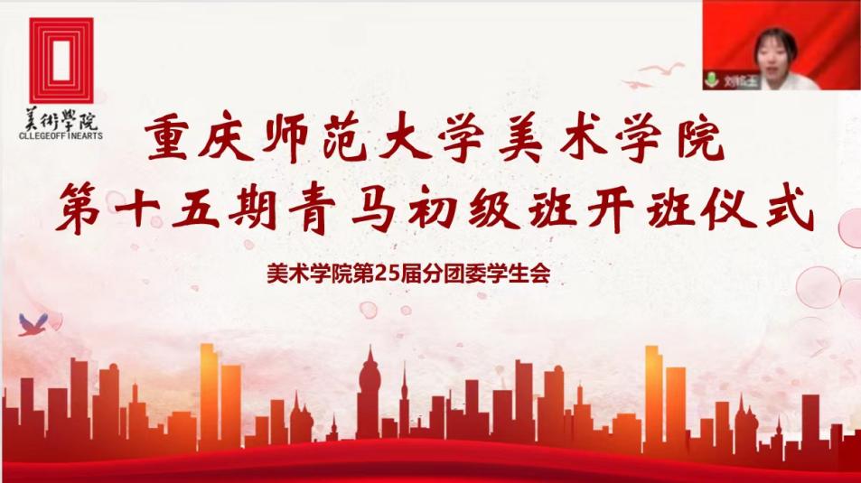 2022年12月14日中午12:00,美术学院第十五期青马初级班开班仪式暨开班第一课在线上举行。美术学院党委书记刘清泉老师,党委副书记丁睿老师,分团委书记余艳婷老师,全体辅导员老师,以及第二十五届分团委学生会全体成员、第十四期青马初级“优秀学员”代表、第十五期青马初级班全体成员参加本次活动。此次大会由团学会学生副书记刘铭玉主持。