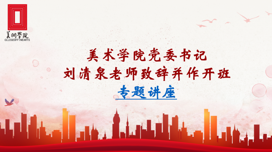 接下来美术学院党委书记刘清泉老师进行开班致辞和作专题讲话。他将诗性的语言和青马工程以及美术学院学生文学、艺术修养结合,给同学们上了深刻的一课。同时刘书记还表示了对青年的期许,要学会奉献社会,尽自己所能帮助社会,在奉献社会中提升自我。