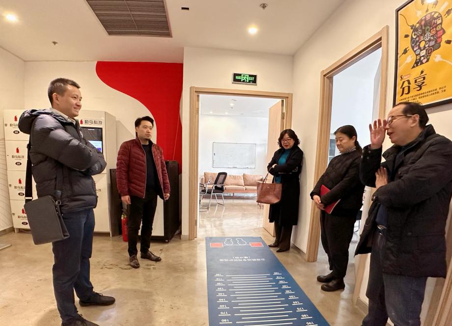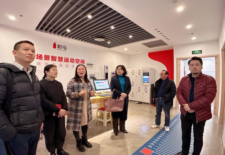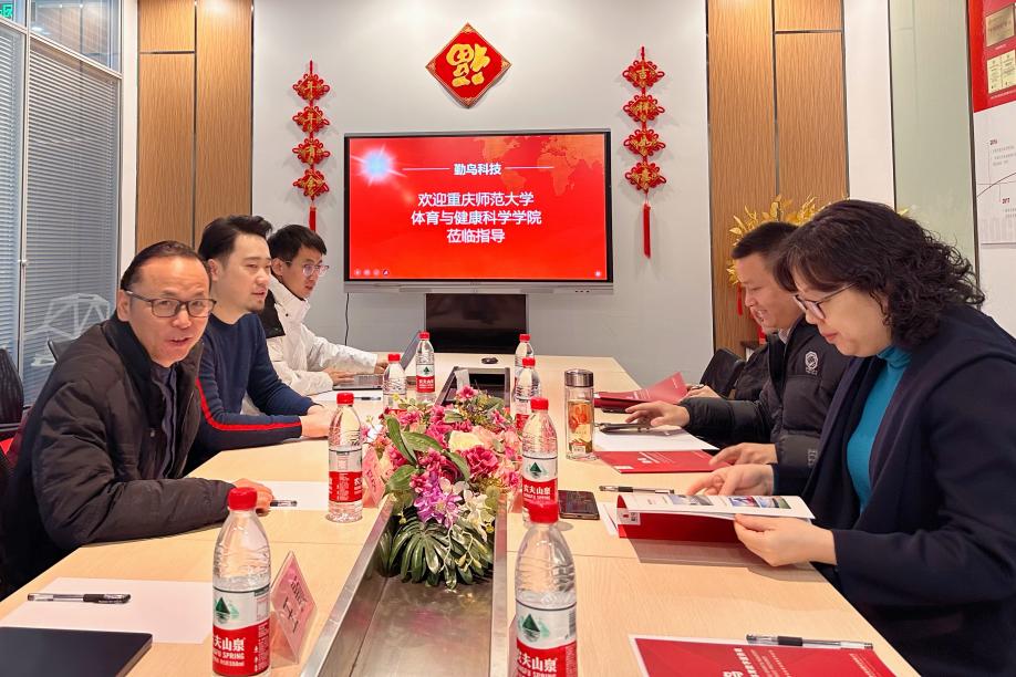在重庆勤鸟圈科技有限公司,总经理罗广介绍了公司概况。重庆勤鸟圈科技有限公司专注于体育产业数据服务,通过SAAS云服务平台与智能物联设备结合,以“数据+服务+生态”为体育产业发展赋能。项目总监张旋详细介绍了“智慧体育”系统研发情况。蒋霞书记一行参观了全场景智慧运动空间、智慧场馆系统集成方案等创新型项目。蒋书记希望,以此次调研为契机,推动双方在创新创业、教育实践、智慧体育等多个方面进行深层合作,进一步建立校企互帮互助的合作模式,推动双方更好发展。