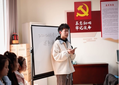 大会第二项,余海蔚老师对接下来的工作进行安排。她指出,同学们应将每一次述职都当成一次面试,在日常生活中锻炼自己的能力。她谈到:同学们要为了自己的梦想努力,走进社会,与社会相结合,成为德智体美劳相结合的复合型人才