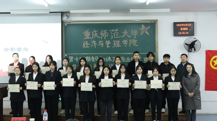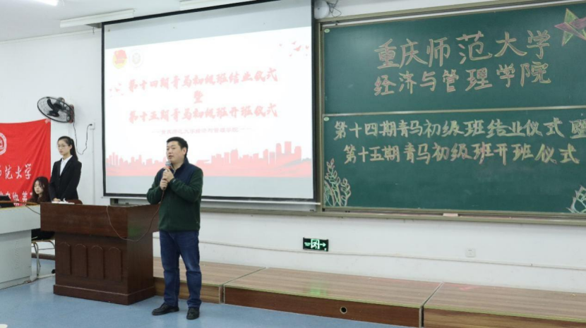 为了进一步加强经济与管理学院学生的政治修养,增强其政治信念的坚定性、政治鉴别的敏锐性、政治忠诚的可靠性。32日下午两点半,经济与管理学院于特教楼2113室开展第十四期青马初级班结业仪式暨第十五期青马初级班开班仪式。会议由马列部张琪主持,特邀学院党委副书记李青松、团委书记张莉、2021级辅导员唐艺珊、2022级辅导员李威出席,第十四期青马初级班优秀学员、第十五期青马初级班全体学员悉数参加。