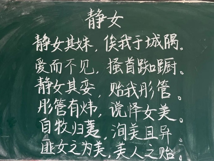 此计划下共设有四项活动,大一、大二打下师范技能基础,大三深入提升师范技能,贯穿全程、层层递进,致力于提高文院学子的专业功底、教育教学技能与文化修养,培养能践行师德,具有教学、育人、持续发展能力的专业人才。据悉,本学期共完成4次“周周写板书”活动、2次“月月上讲台”活动、以及“微课八分钟”活动和“精品教案设计”活动,与此同时,也涌现出了许多优秀作品。干净整洁的板书、笔力坚挺的字符、充满设计思路的创新教案,无一不体现着文院学子良好的专业素养以及认真刻苦、提升自我的奋发向上精神。