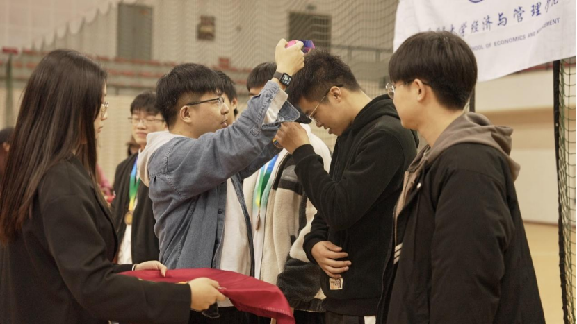 本次迎新杯篮球赛不仅丰富了同学们的课余生活,还增进了班级凝聚力和团体荣誉感,充分展现了经管学子努力拼搏、永不放弃的青春采。