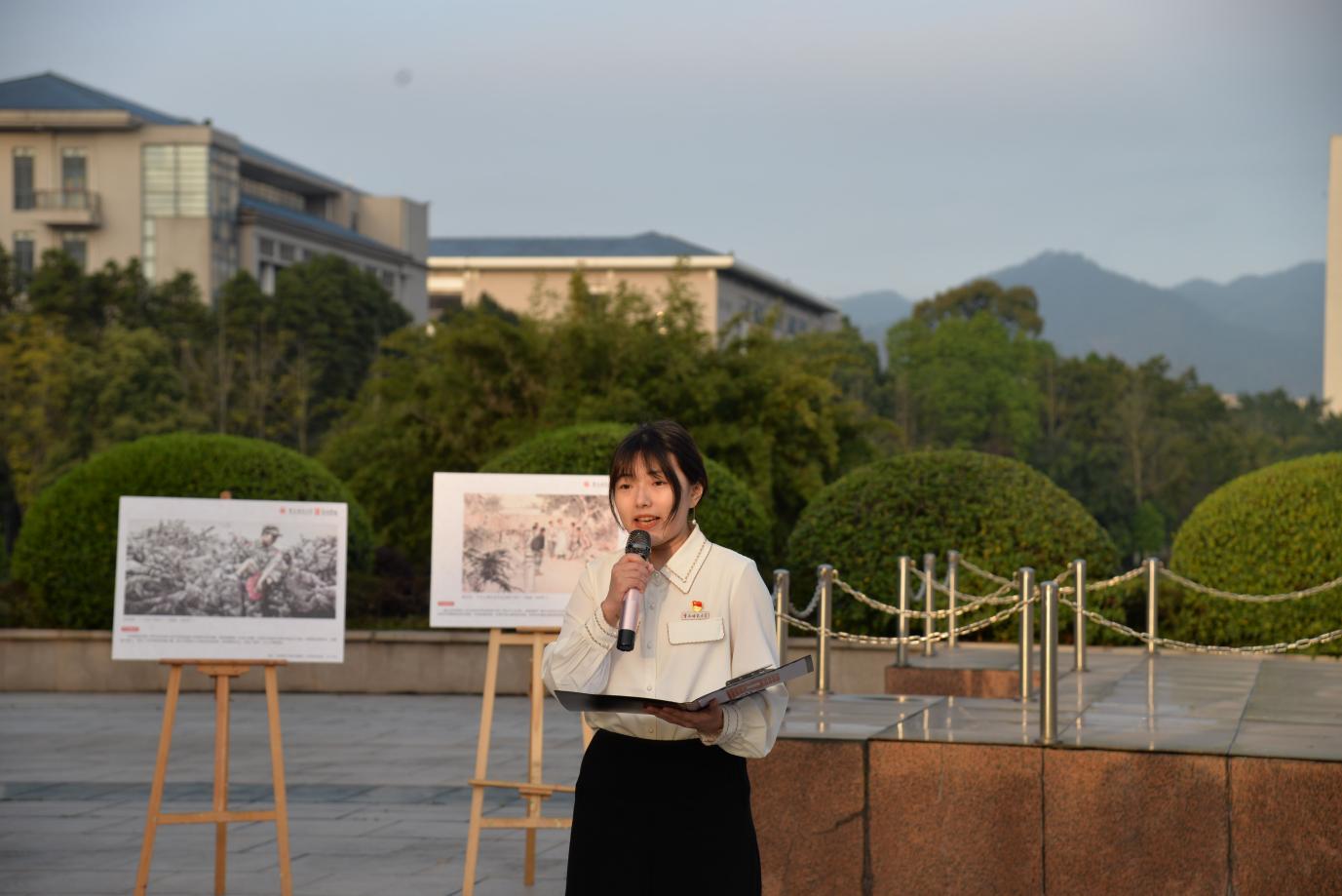 随后,第十四期青马工程高级班学员代表,2020级视觉传达设计专业刘铭玉同学做主题分享,向祖国献礼。她表示作为新时代的青年,不仅要有理想、敢担当,还要对历史和文化有多深刻的认知。作为美院的学子,我们可以运用自己的专业知识,用艺术展现中华历史之美、山河之美、文化之美。用最时尚最耀眼的红色,描绘新时代青年人的创造之力。她勉励学弟学妹们除了扎实掌握学习专业知识之外,还需在实践中历练。充分利用专业特点,勇于深入基层受教育,长才干,做贡献,知行合一全面发展,坚持用专业用艺术服务大众,服务社会。