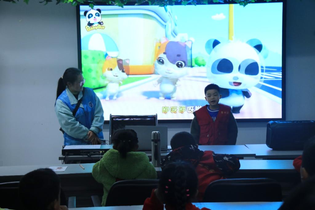 活动伊始,志愿者们布置场地等待小朋友们的到来,协助社区工作人员做好签到和信息登记。人员到齐,志愿者将小朋友们分为两队,一队带领小朋友们前往小区附近街道巡逻观察,同时根据所见现象教授交通知识,增强小朋友的切身体验。紧接着,志愿者带领小朋友返回社区,以问答的方式让小朋友们对巡逻所见的交通安全隐患进行讨论。然后,志愿者采用播放视频的方式教授小朋友们学习交通安全歌,增强小朋友们对交通安全知识的记忆。最后,志愿者们引导小朋友们自行总结,写出所学到的交通安全知识,以达到牢记于心的效果。