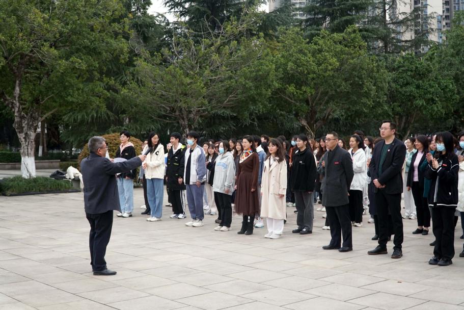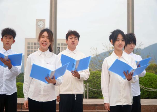“没有共产党就没有新中国。”院长颜春龙指挥师生合唱《没有共产党就没有新中国》,歌声嘹亮激昂,响彻校园,同学们用歌声回顾往昔艰苦岁月,礼赞伟大的党,也祝福祖国更加繁荣昌盛。