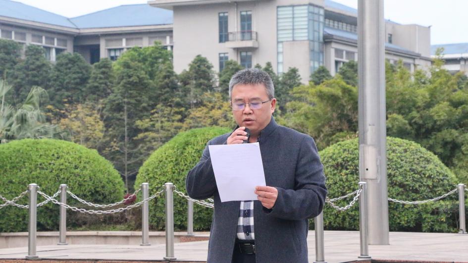 礼毕,院党委书记郑志坚进行国旗下讲话。郑书记带领大家回顾了我院抗疫历程,肯定了我院在学校统一部署下,正确的、随时随势转换的疫情防控政策以及全院师生的辛勤付出。新学期,郑书记对同学们提出了三点建议,与同学们共勉:一要以“勤学善思,求是致用”的重师学风,涵育“底气”;二要以“自强不息,躬行师道”的重师精神,涵育“朝气”;三要以“厚德笃学,励志创新”的重师校训,涵育“锐气”。