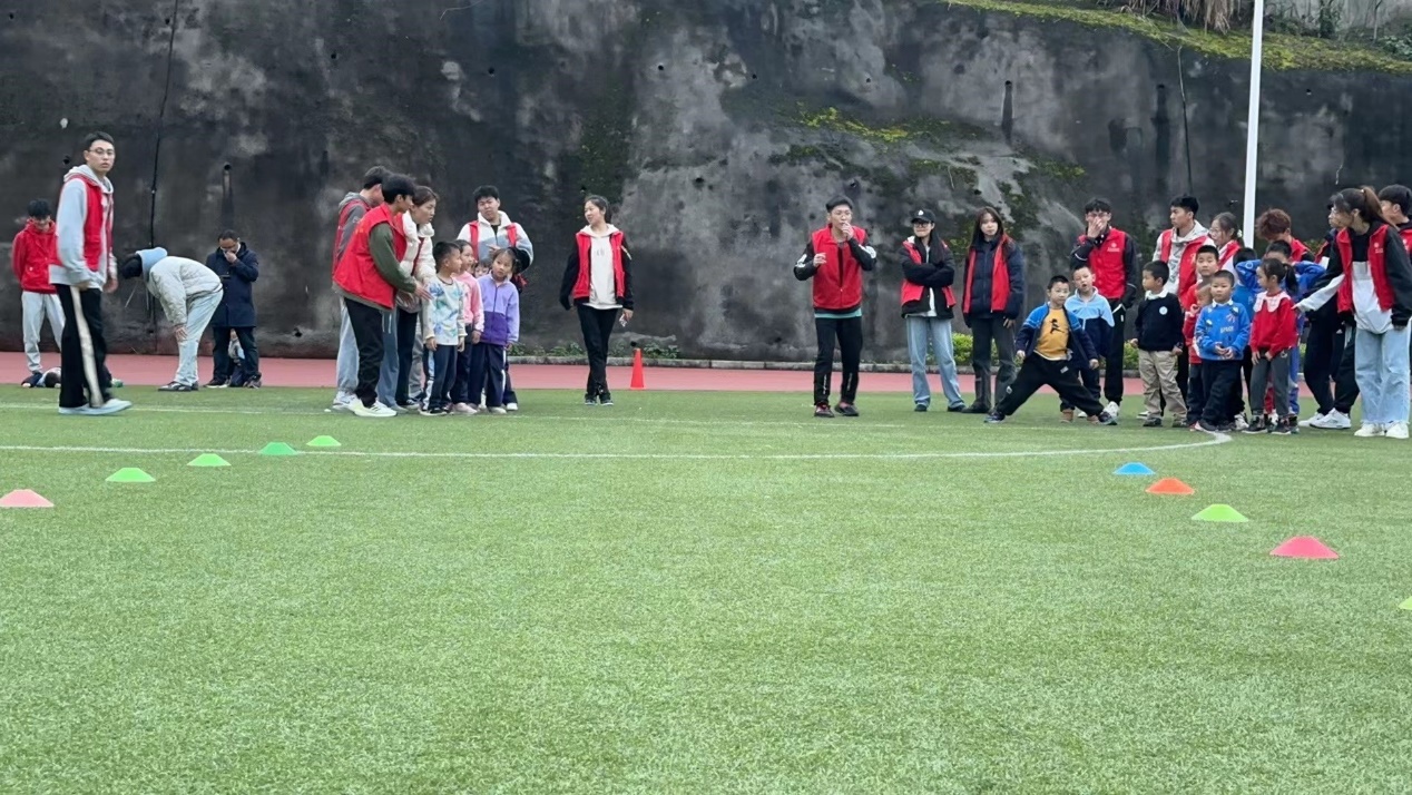 此次活动共有20名孩子参与,有抱团、解救人质、过障碍接力等趣味体育小游戏。在游戏开始前,志愿者们带领孩子们进行了简单的准备活动,以免因未热身导致受伤。游戏期间,志愿者们从旁指导、鼓励孩子们,确保小朋友健康、快乐地运动。