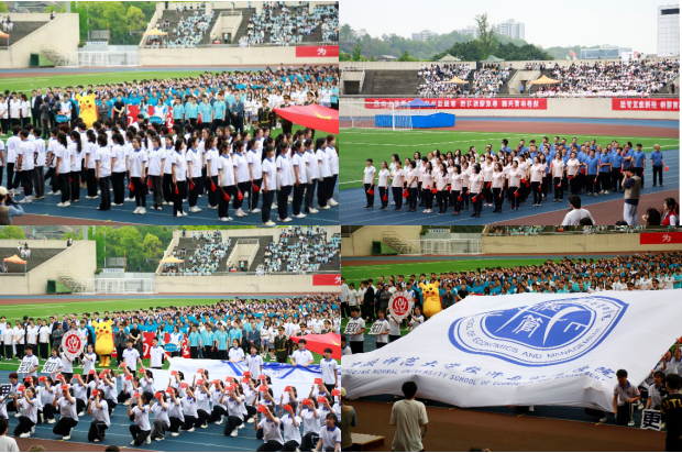 运动无处不在,青春永不言败。伴随着慷慨激昂的《运动员进行曲》,各方阵队伍依次入场,开幕式正式拉开了帷幕。由我院师生代表组成的特色方阵,手持国旗,学生身着经管院服,尽显青春活力:教师穿戴整齐,气宇轩昂,展示经管风采。方阵摆开阵型,两名成员向前奔跑,刹那间的巨大经管院旗在同学们的舞动下,于空中飘扬,气势不凡;同时,我院学子以“致知、致用、致远”与“更高、更快、更强”为标语,口号铿锵有力,挥洒豪迈与激情,彰显我院学子风华正茂、昂扬向上的青春风采。