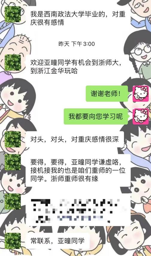 帅思奕同学收到的文创产品 冯亚瞳同学与浙师老师的聊天记录