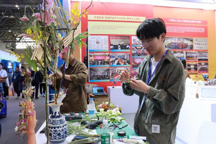 云逛展小组的负责人之一,来自21级影视摄影与制作专业的李雪同学印象最为深刻的是N5馆的重庆专区,“在拍摄中我看到了许多重庆的高职专科类院校所展出的产品,像无人机、自制小蛋糕、插花等,这令我感触很深。在社会中人们往往对高职教育存在一定偏见,认为耀眼的学历和成绩更值得钦佩。但在亲眼目睹高职同学们超强的动手创造力和想象力后,我觉得去掌握、精通一门技术同样也是一件很骄傲的事情。”