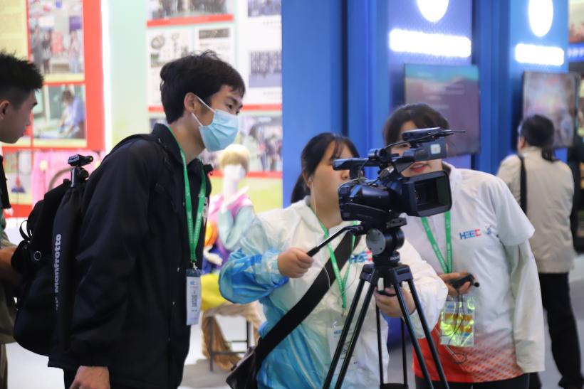 本届高博会保留了“线上”、“线下”双主会场,共计邀请了42名影视制作相关专业的高校学生在云看展组别中进行社会实践,负责为近400家展商提供视频录制。不仅为展商们提供了更广阔的线上展示平台,也便于线上的观众全方位、多角度地了解展位及产品相关咨询。
