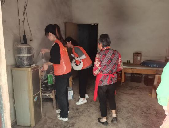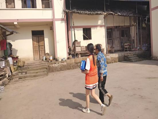 情系老人冷暖,真心慰问关怀。志愿者们分成两队分别前往建新村便民服务中心和六七汇村走访慰问村民。志愿者们在村主任王应全的带领下,分别前往老人家中,为他们送去牛奶等物品,并围坐在老人身边嘘寒问暖,了解老人的生活日常,关心他们的身体情况并陪同老人聊天解闷,为他们送去精神慰藉和心理抚慰,增进与老年人之间的交流与沟通。