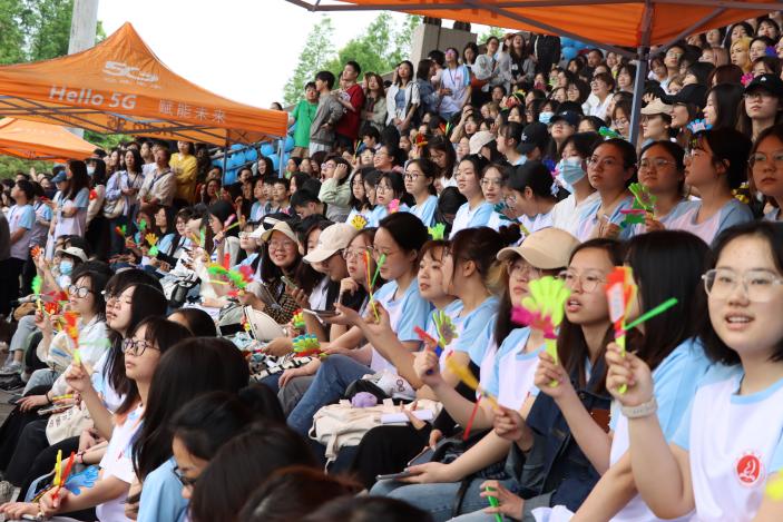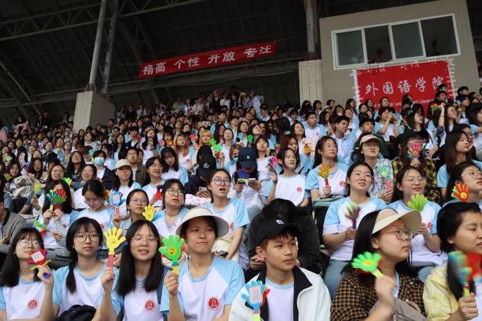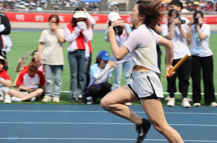 观众席上也是气势如虹,每当赛道上出现高光时刻,外国语学院同学们的呐喊声,加油声,连绵不断,敲鼓声震耳欲聋。这声音仿佛是一种无形的力量,推动运动员奋勇向前,活力拼搏。伴随着阵阵助威声,他们精神百倍,活力四射,取得一项又一项优异的成绩,彰显了我院学子不惧困难、昂扬向上的青春风华。