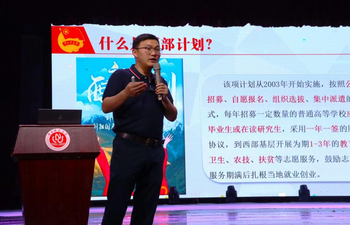 据悉,在集中宣讲之后,孙玖江老师及各学院西部计划项目办公室老师分别在寝室园区开展深入政策解读,进一步让同学们对西部计划有了更加充分的了解,引导广大学子积极投身西部计划志愿服务,助力西部地区乡村振兴,在祖国最需要的地方贡献自己的青春磅礴之力。
