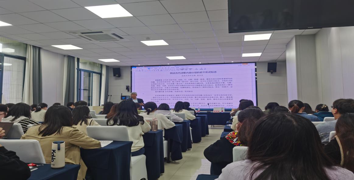 2023年4月23日下午14:30,北京大学中文系教授、博士生导师孙玉文先生,应邀于文学院汇贤楼113教室,作主题为“古代诗歌内容分层的若干形式标记”的学术讲座。本次讲座由文学院教授张中宇主持,何亮教授、葛佳才教授、杨照博士参与交流,2021、2022级研究生及汉教专业本科生等100余人聆听了讲座。现场座无虚席,气氛热烈。