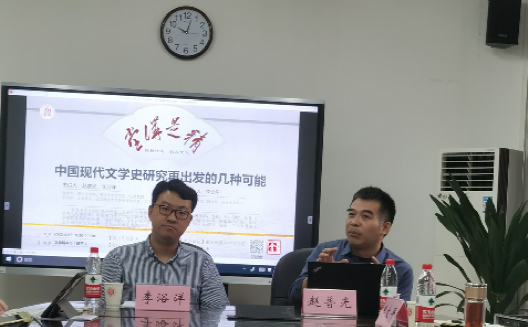 2023年4月21日上午,中国现代文学研究会理事兼副秘书长、博士生导师、暨南大学中文系赵普光教授与北京师范大学仲英青年学者、文学博士李浴洋老师应邀在我院406教室进行了题为“中国现代文学史研究再出发的几种可能”的座谈会。此次座谈会由文学院李文平教授主持,我院部分研究生参与。