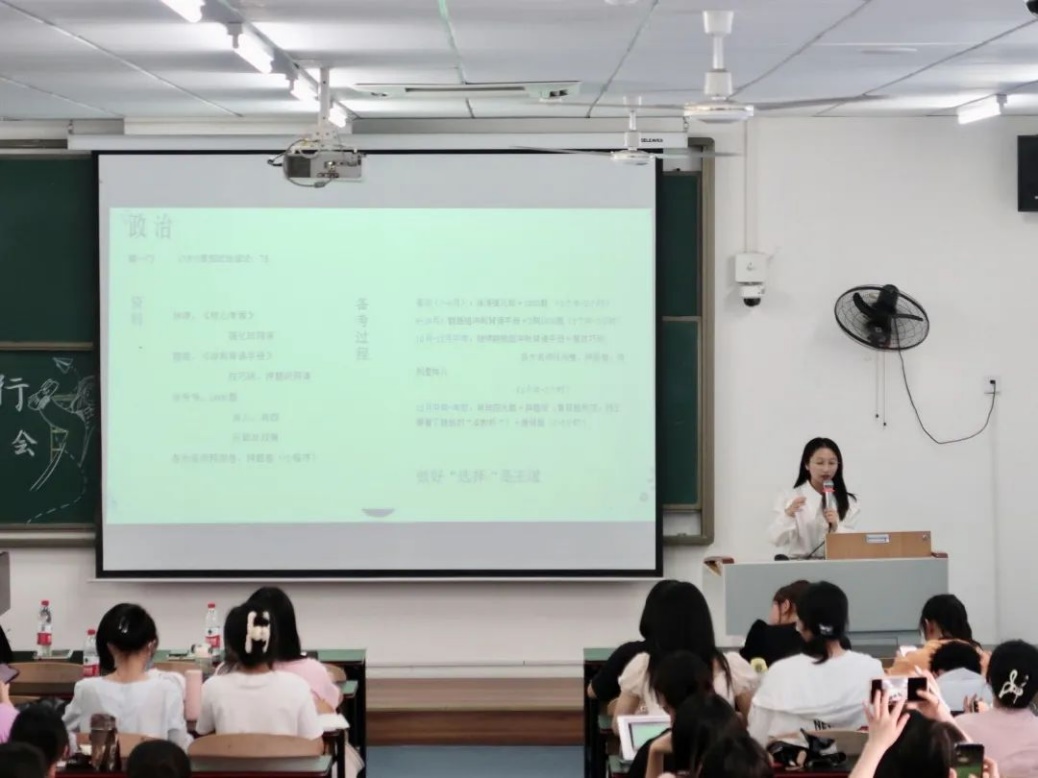 会上,2023届非师范专业优秀毕业生郑子煜、宋佳鑫、金欣、刘言、黄烁涵依次发言。他们从自身考研经历出发,围绕如何选取专业和院校、制定复习计划、调整心态以及推免的注意事项等方面分享各自的感受和建议。交流发言各有侧重,有的着重讲述考研英语学习,强调词汇量的重要性,重视单词的积累及模板的背诵;有的结合历年考试试题的特点,详细剖析了答题技巧及解题思路;有的提出要放松心态,不要过度给自己施压,持之以恒,始终保持乐观心态和健壮体魄。交流中,同学们充分了解了考研的相关知识,纷纷表示受益匪浅,收获良多。