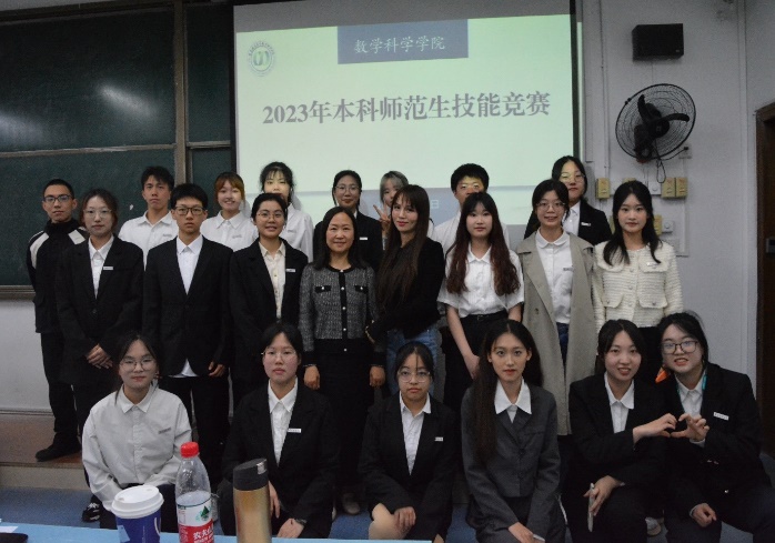 为强化师范生教学技能训练,培养一批“师德高尚、师能卓越、锐意创新”的优秀教师后备队伍,20235109:00-12:30,数学科学学院在大学城校区弘德楼1510315101教室举行2023年本科师范生教学技能竞赛院级决赛。仲秀英、杨芳、童莉、沈林老师担任评委。