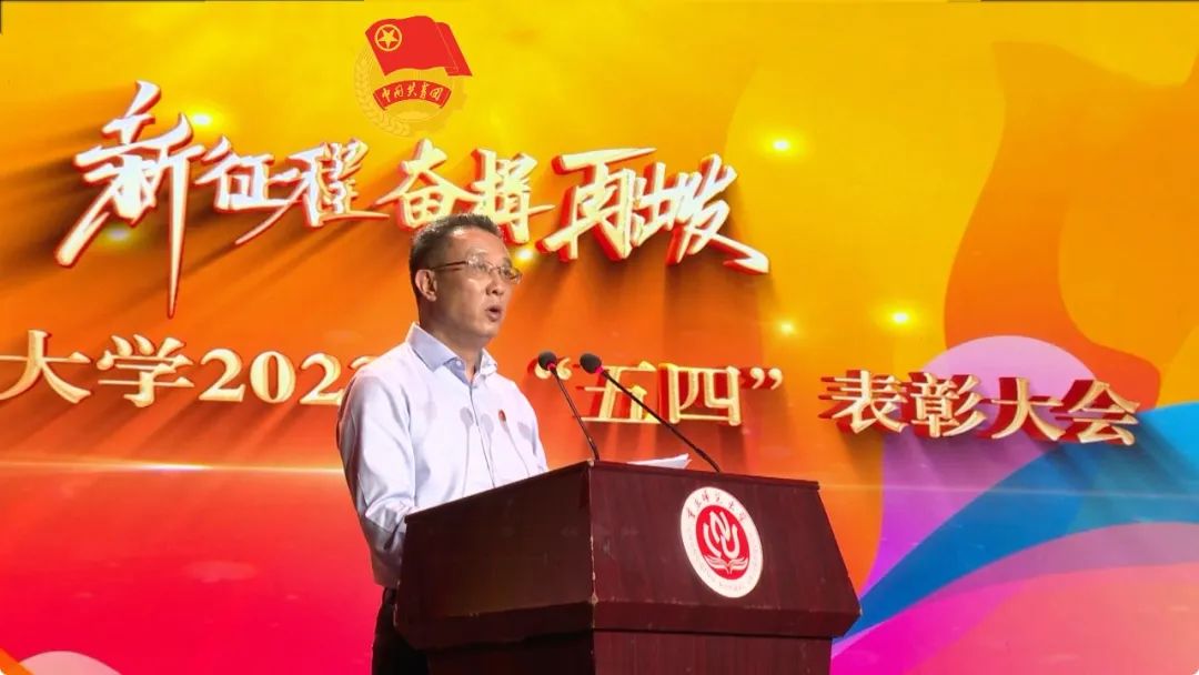 为深入学习贯彻习近平新时代中国特色社会主义思想和党的二十大精神,激励各级团组织和广大团干部、团员艰苦奋斗,从党的创新理论中找方向、找答案、找方法,推动主题教育扎实开展、走深走实。2023年5月4日下午,我校在校友会堂演出厅开展以“学习党的二十大、永远跟党走、奋进新征程”为主题的“五四”表彰大会。相关校领导,相关职能部门,各学院党委副书记、分团委书记,各学院青年代表、青马学员代表及受表彰的先进集体与个人代表参加。