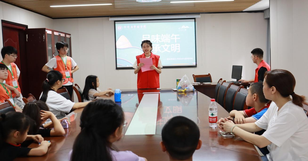 为弘扬端午节所蕴含的深厚文化背景、寓意,进一步宣传中华优秀传统文化,2023611日上午,经济与管理学院在大成湖社区溪畔互助家工作站举行“品味端午,传承文明”社区志愿者活动。本次活动由刘佩灵同学主持,携手实践部共14名志愿者为大成湖社区的小朋友们带来了一节别开生面的文化学习课。